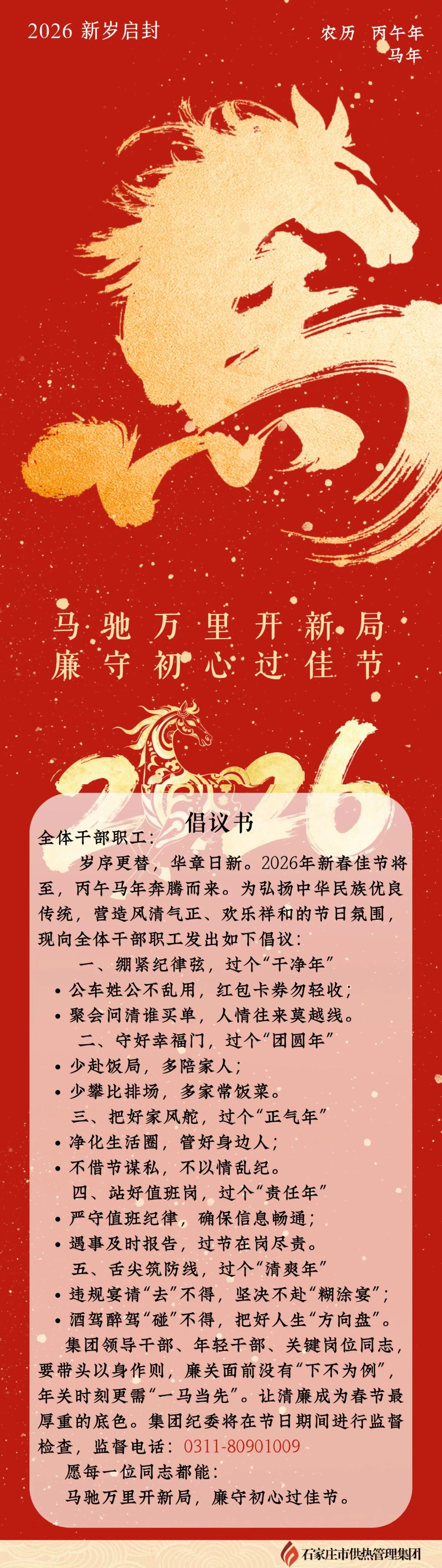 马驰万里开新局,廉守初心过佳节——供热集团春节廉洁提醒